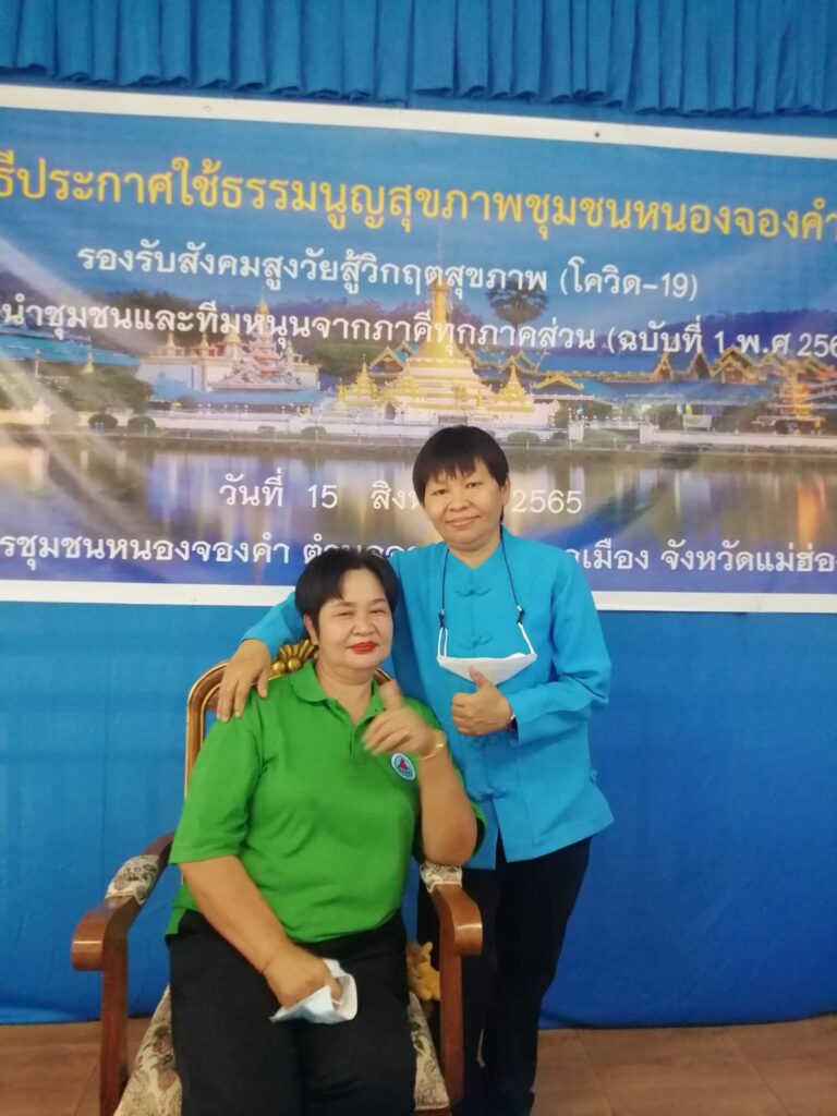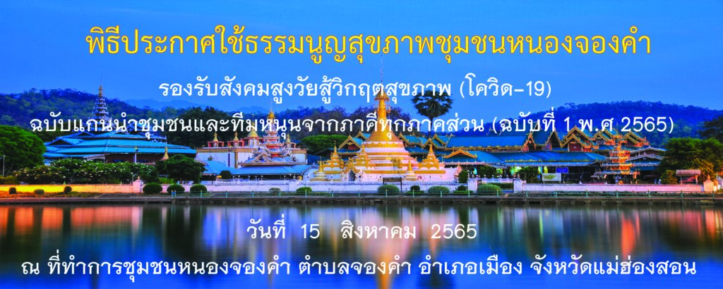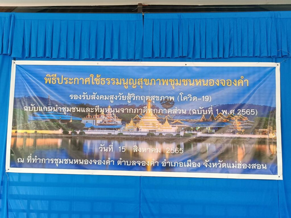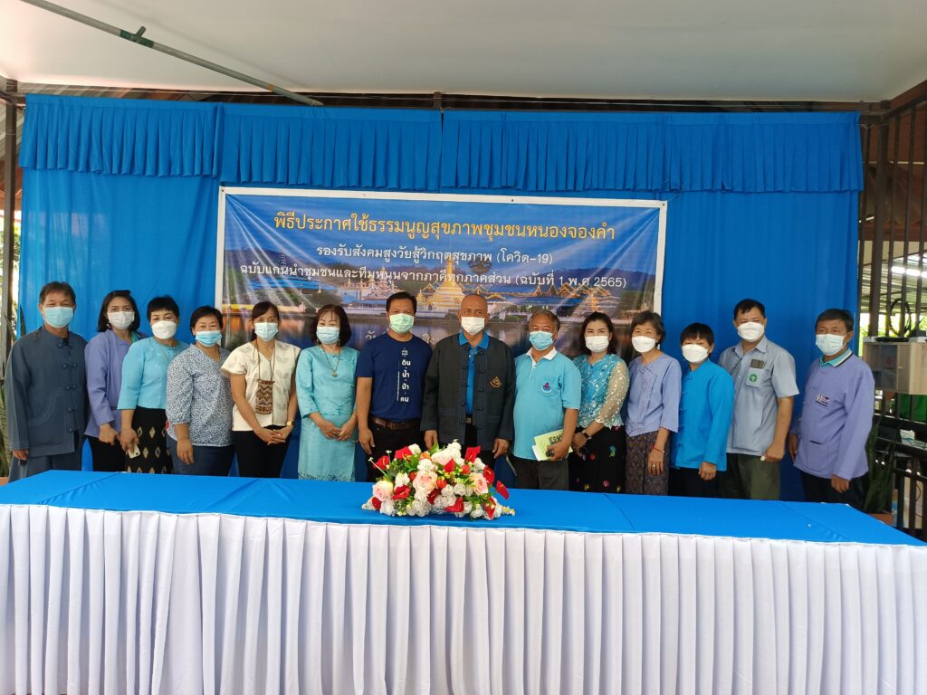 วันที่ 15 สิงหาคม 2565 ชุมชนหนองจองคำจัดงานประกาศใช้ “ธรรมนูญสุขภาพชุมชนหนองจองคำ รองรับสังคมสูงวัยสู้วิกฤตสุขภาพ (โควิด-19)” ฉบับแกนนำชุมชนและทีมหนุนจากภาคีทุกภาคส่วน (ฉบับที่ 1 พ.ศ. 2565)
