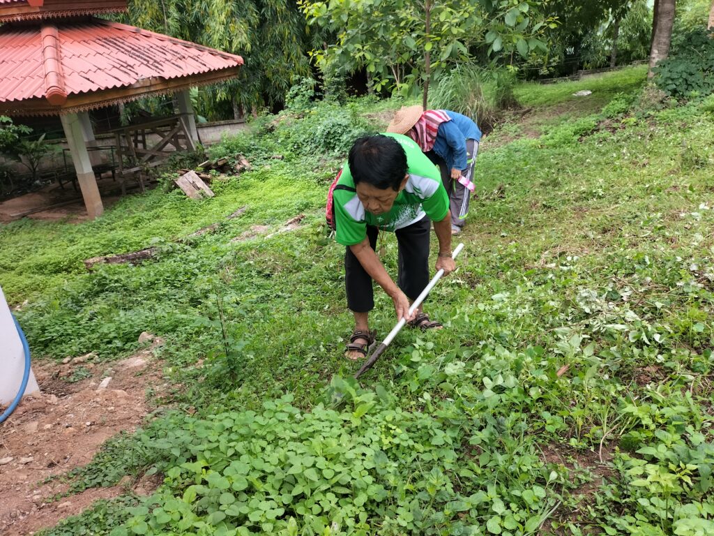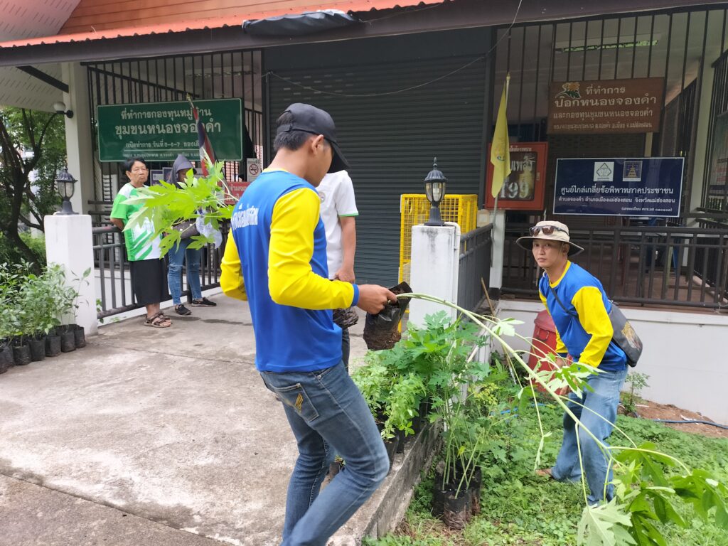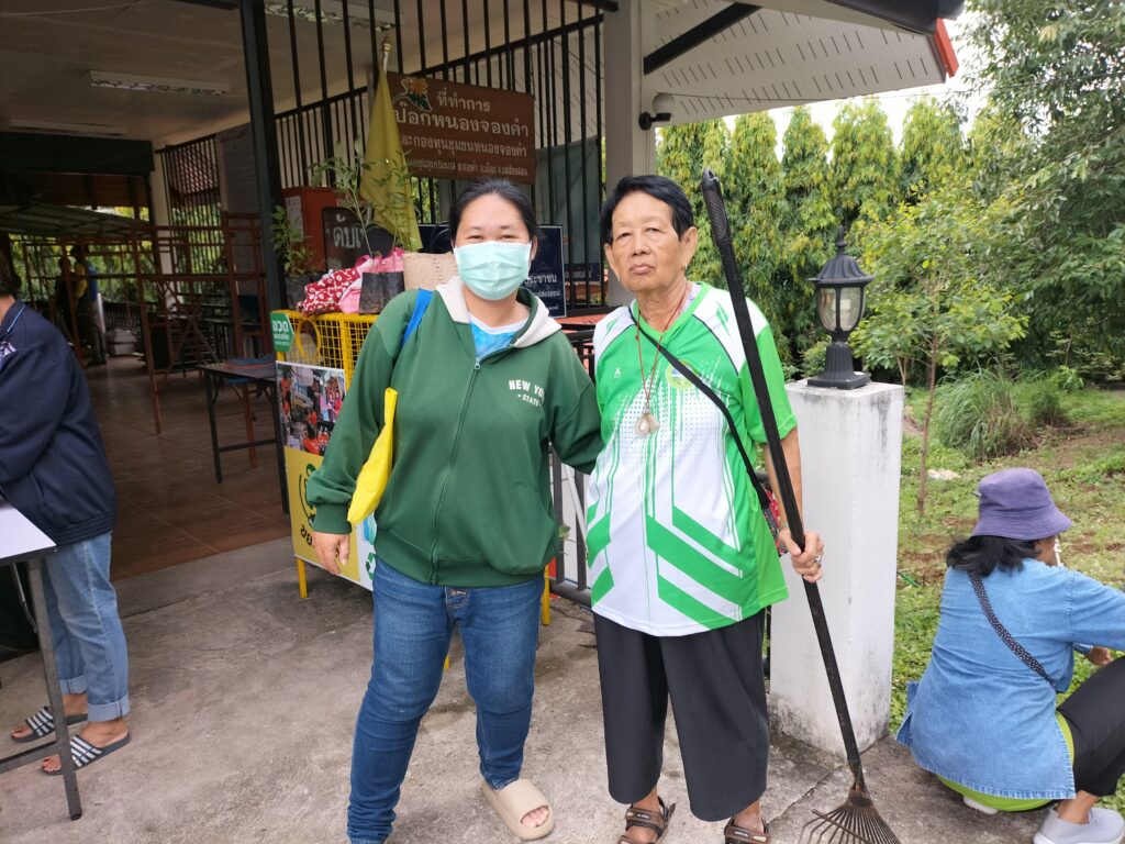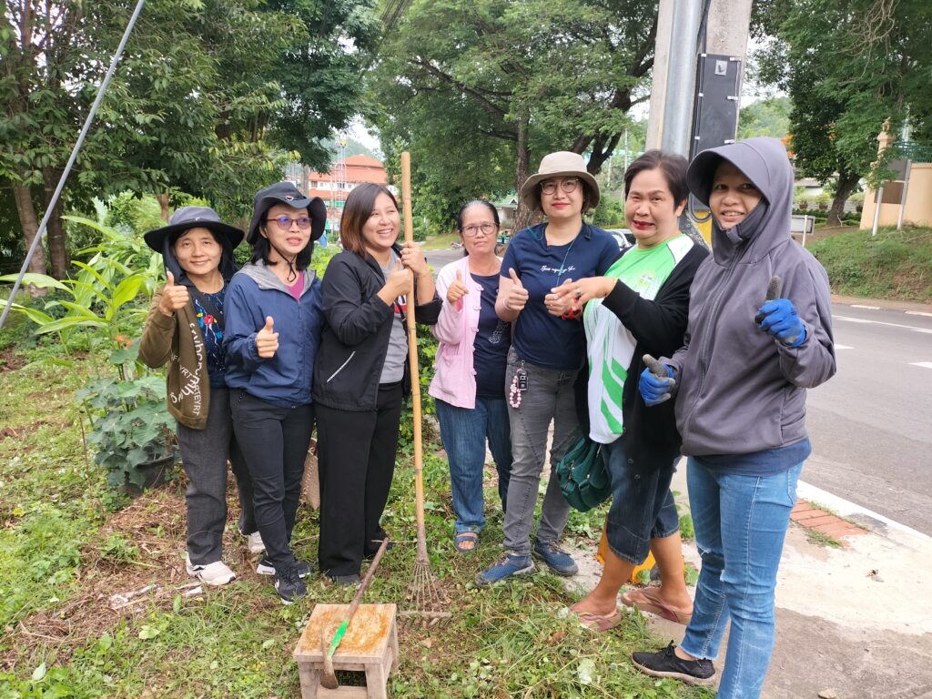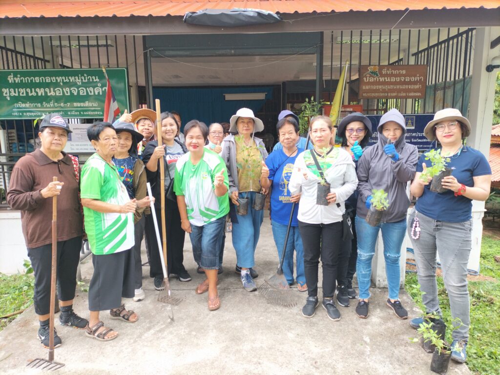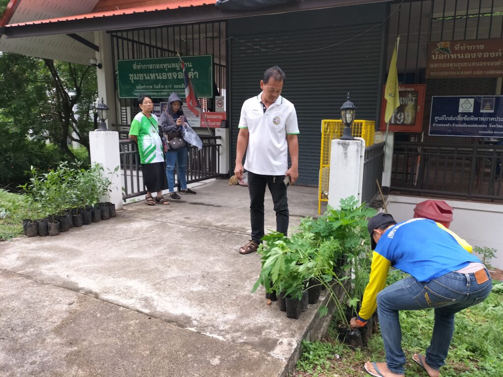 ร่วมด้วยอสม.ชุมชนหนองจองคำ และจิตอาสาในชุมชน ช่วยกัน ช่วยกันทำความสะอาดอาคาร ตัดหญ้า และปลูกพืชผักสวนครัว