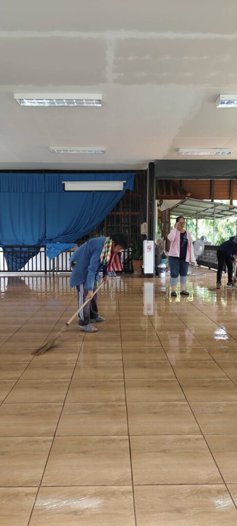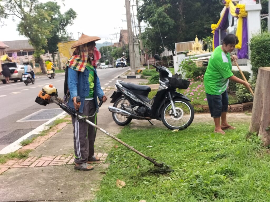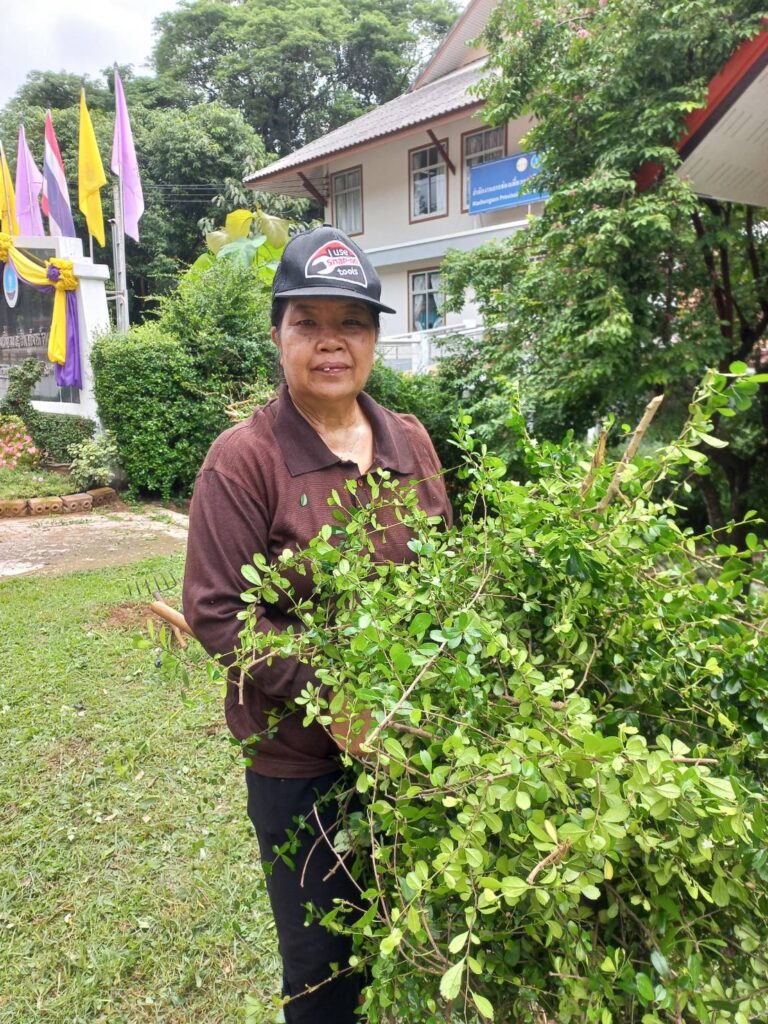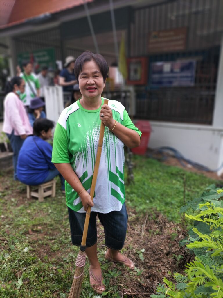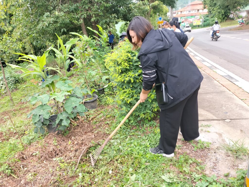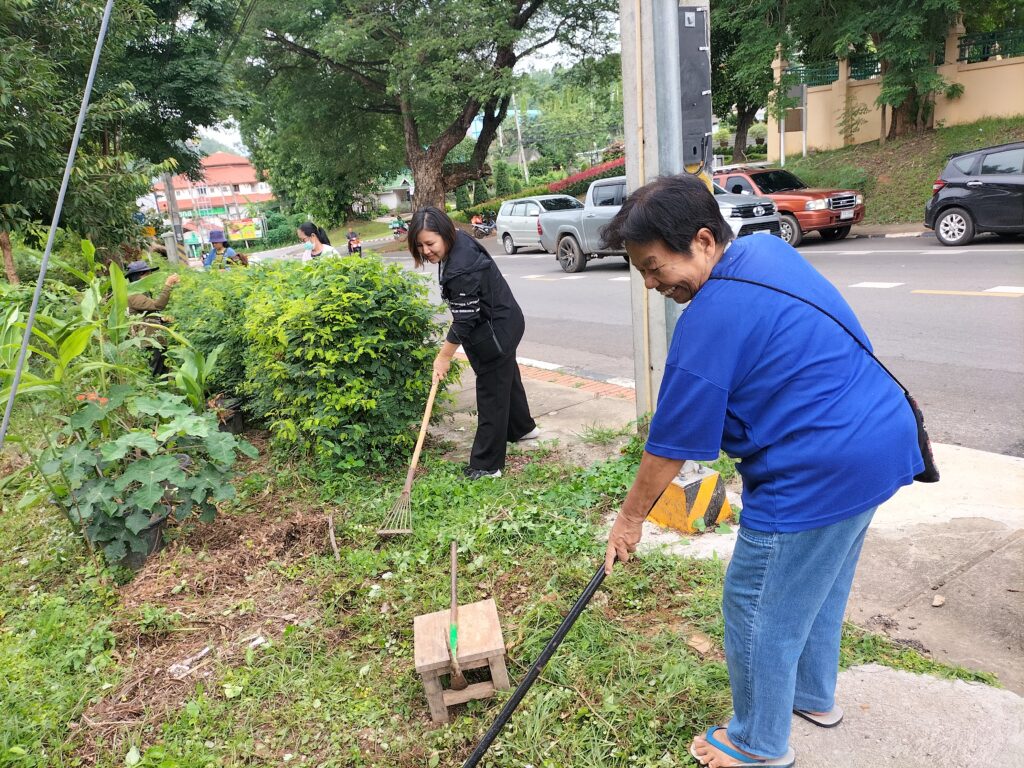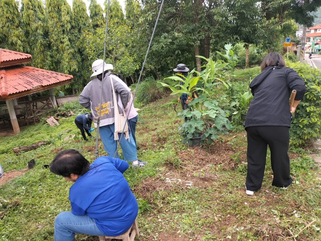 ร่วมด้วยอสม.ชุมชนหนองจองคำ และจิตอาสาในชุมชน ช่วยกัน ช่วยกันทำความสะอาดอาคาร ตัดหญ้า และปลูกพืชผักสวนครัว