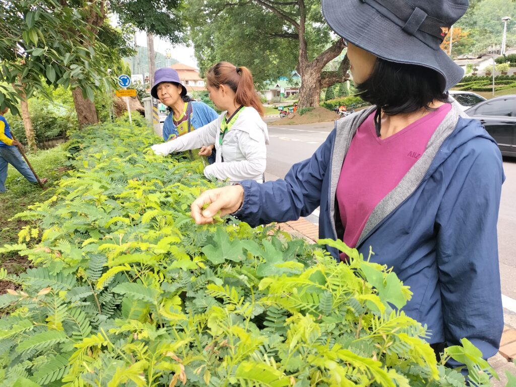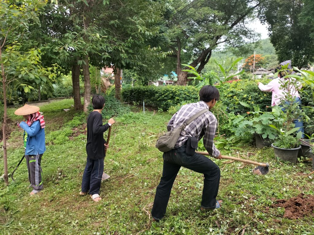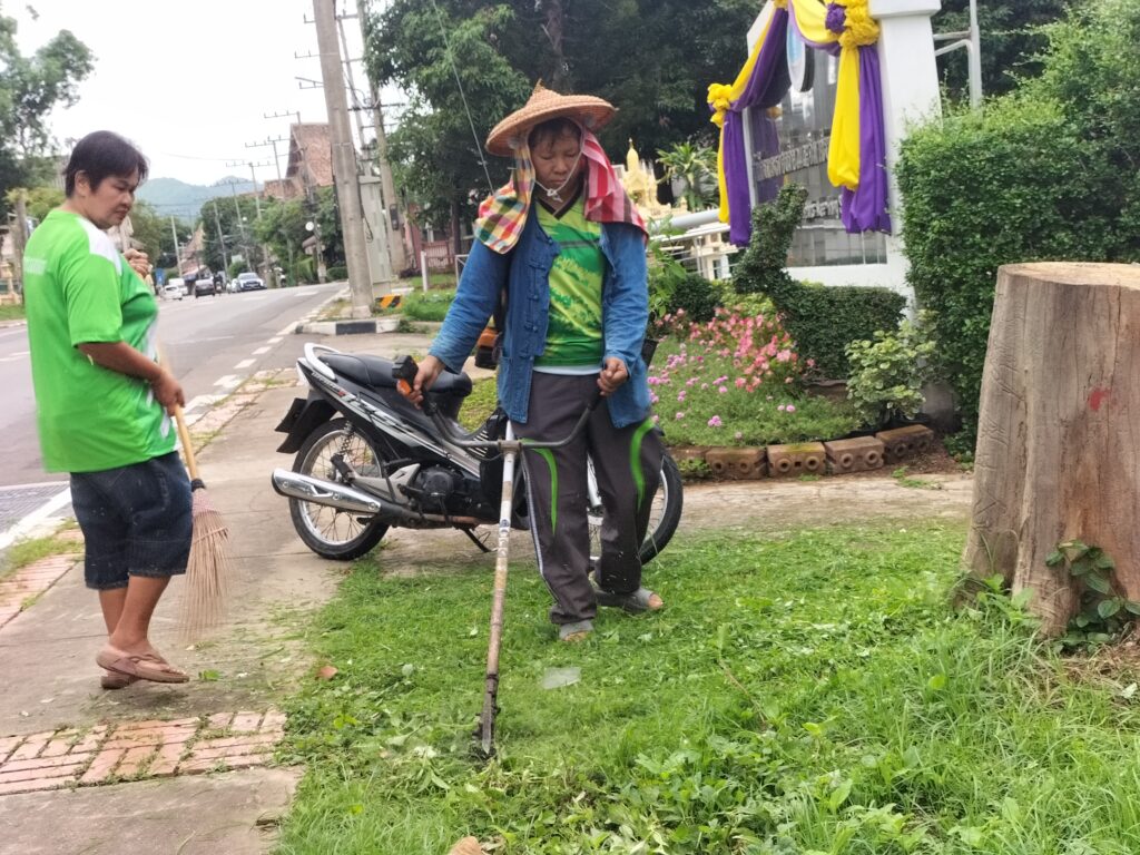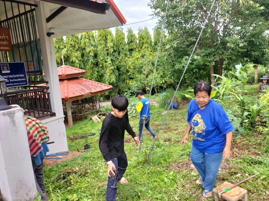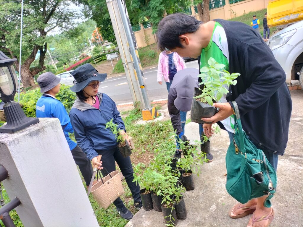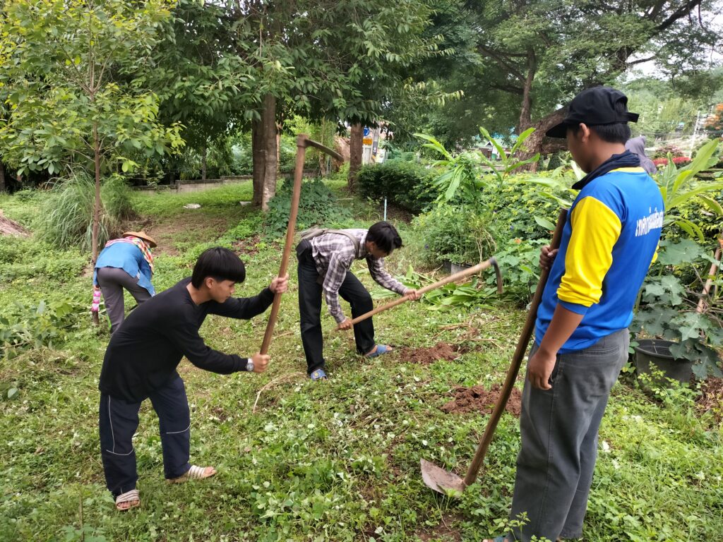ร่วมด้วยอสม.ชุมชนหนองจองคำ และจิตอาสาในชุมชน ช่วยกัน ช่วยกันทำความสะอาดอาคาร ตัดหญ้า และปลูกพืชผักสวนครัว