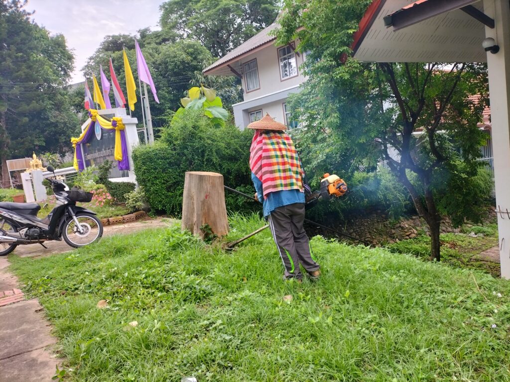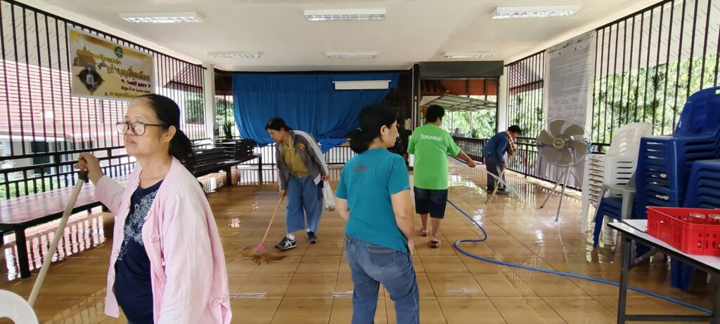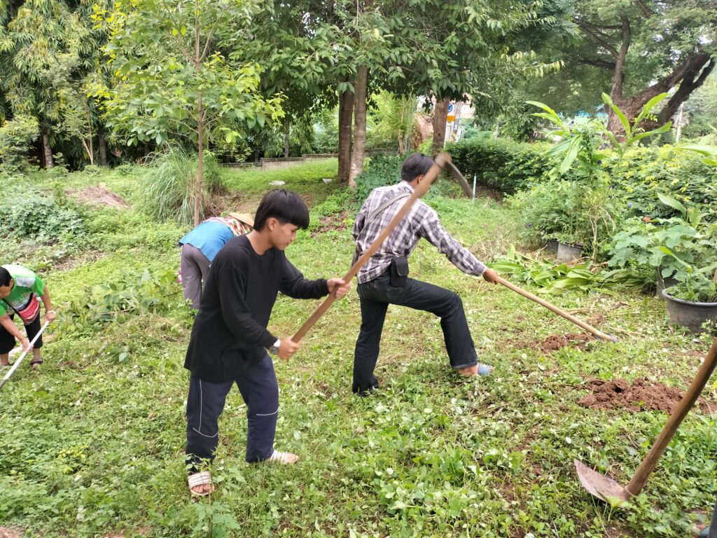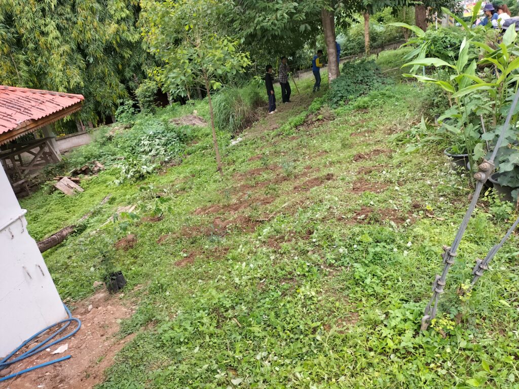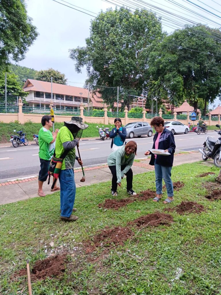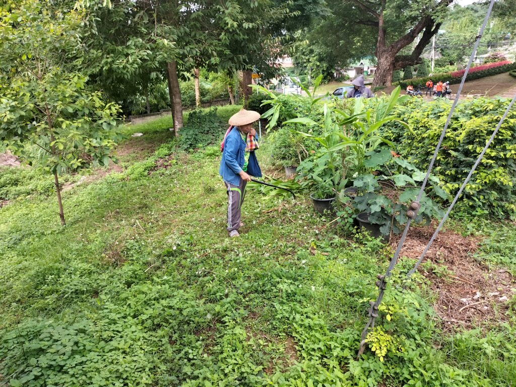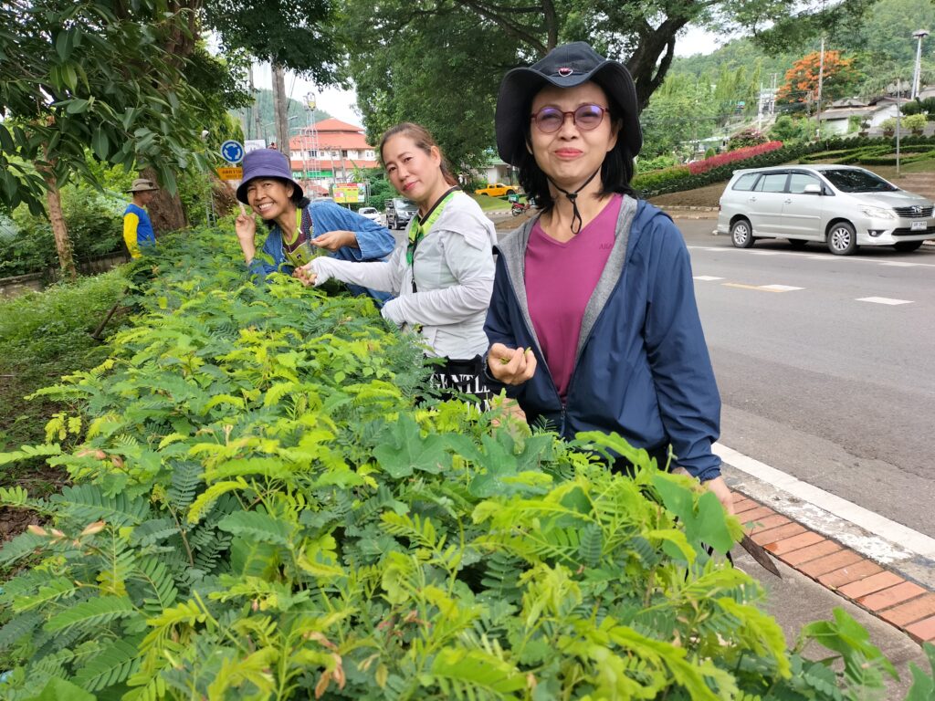 ร่วมด้วยอสม.ชุมชนหนองจองคำ และจิตอาสาในชุมชน ช่วยกัน ช่วยกันทำความสะอาดอาคาร ตัดหญ้า และปลูกพืชผักสวนครัว