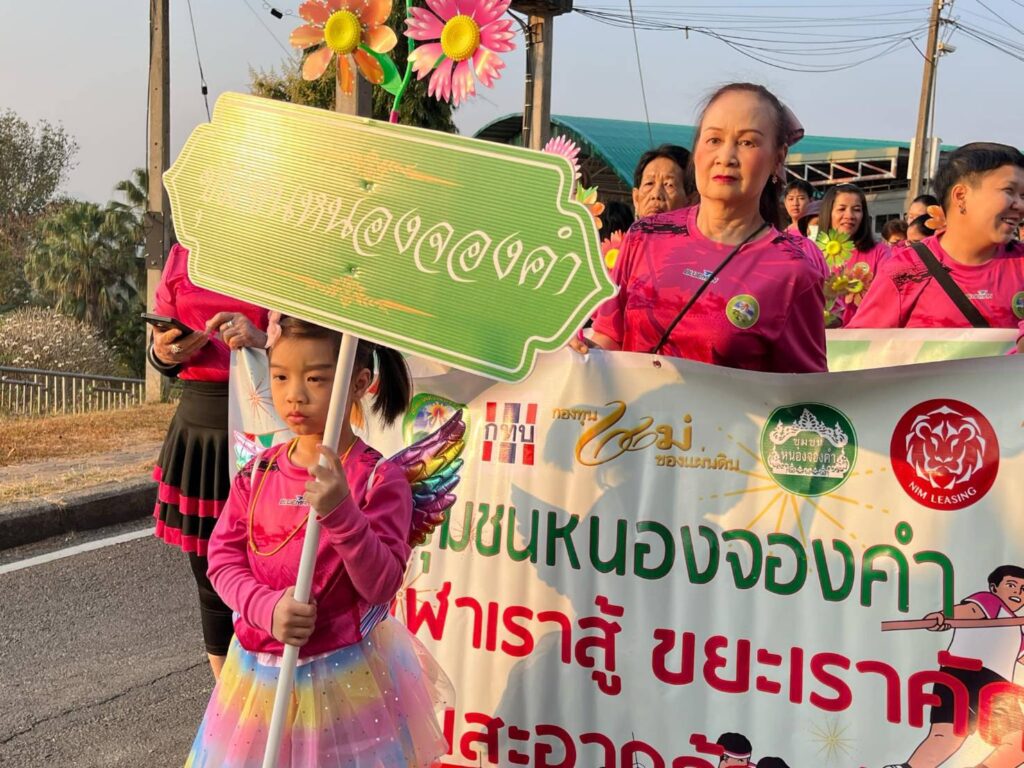 ก่อนพิธีเปิด ได้มี ขบวนเดินรณรงค์จากโรงเรียนเทศบาล 1 ไปยังโรงเรียนเทศบาล 3 โดยประชาชน นักเรียน และเยาวชนจาก 6 ชุมชนในเขตตำบลจองคำ ร่วมแต่งกายด้วยชุดแฟนซีสร้างสรรค์จากวัสดุรีไซเคิล พร้อมถือป้ายรณรงค์ “แยกขยะ ลดโลกร้อน” และ “กีฬาสร้างสามัคคี ห่างไกลยาเสพติด” เพื่อกระตุ้นจิตสำนึกด้านการรักษาสิ่งแวดล้อม และส่งเสริมการมีส่วนร่วมของชุมชน