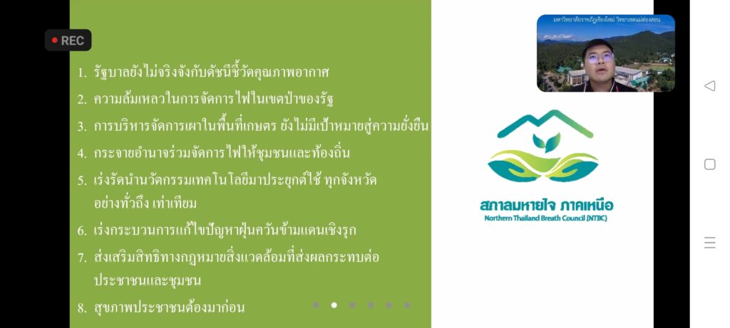 2. ข้อเสนอเพื่อยกระดับการแก้ปัญหา มลพิษฝุ่นควันภาคเหนือ โดย คทง. ด้าน